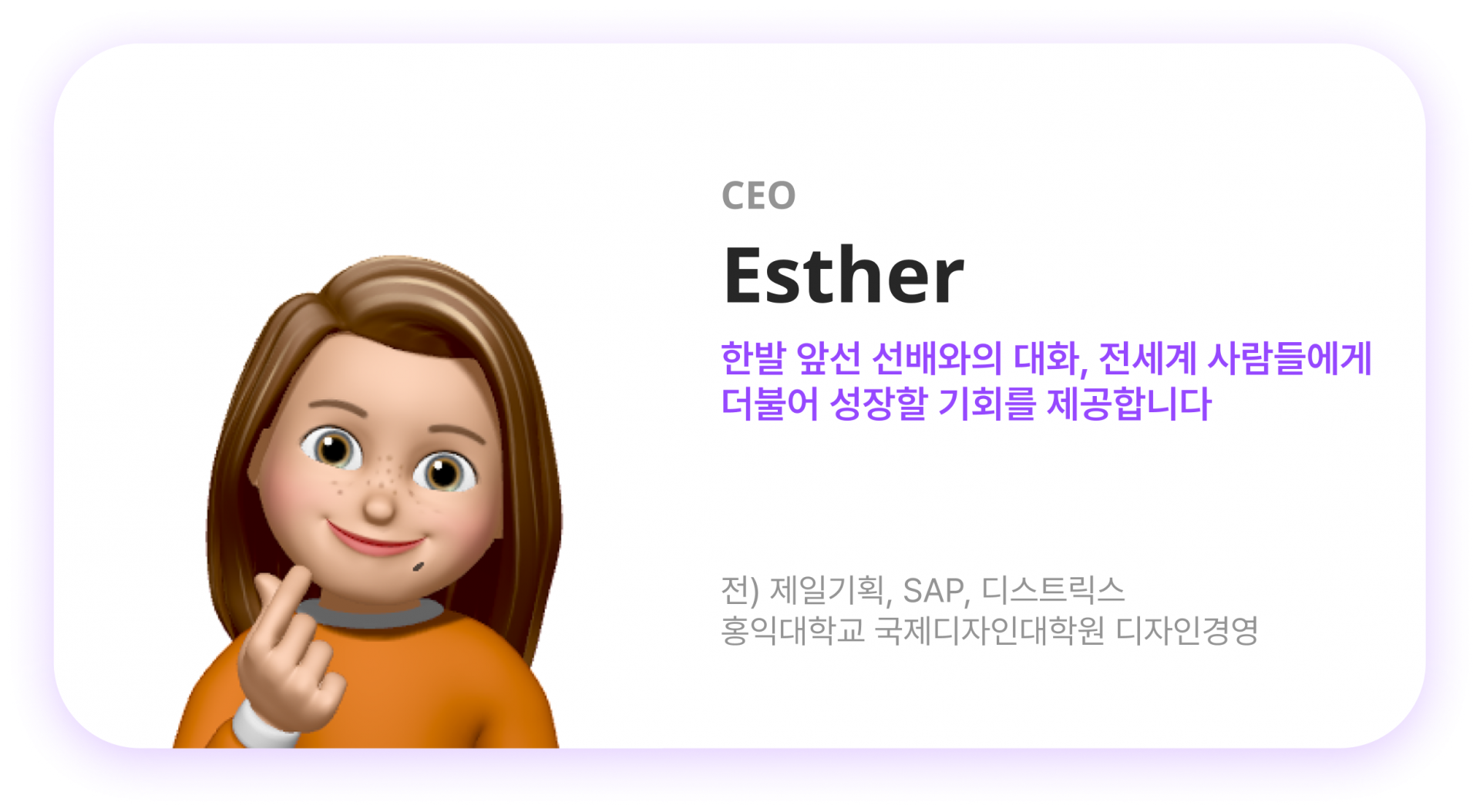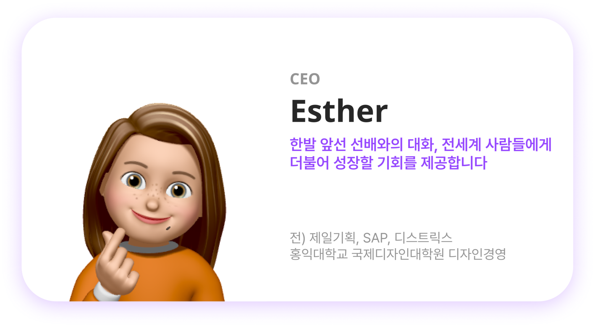“15년 해외에서 일하고 공부하다 보니 뒤를 돌아보며 누군가에게 도움을 주고 싶다고 느끼는 시점에 라이프챗을 만나게 되어 기뻤어요."